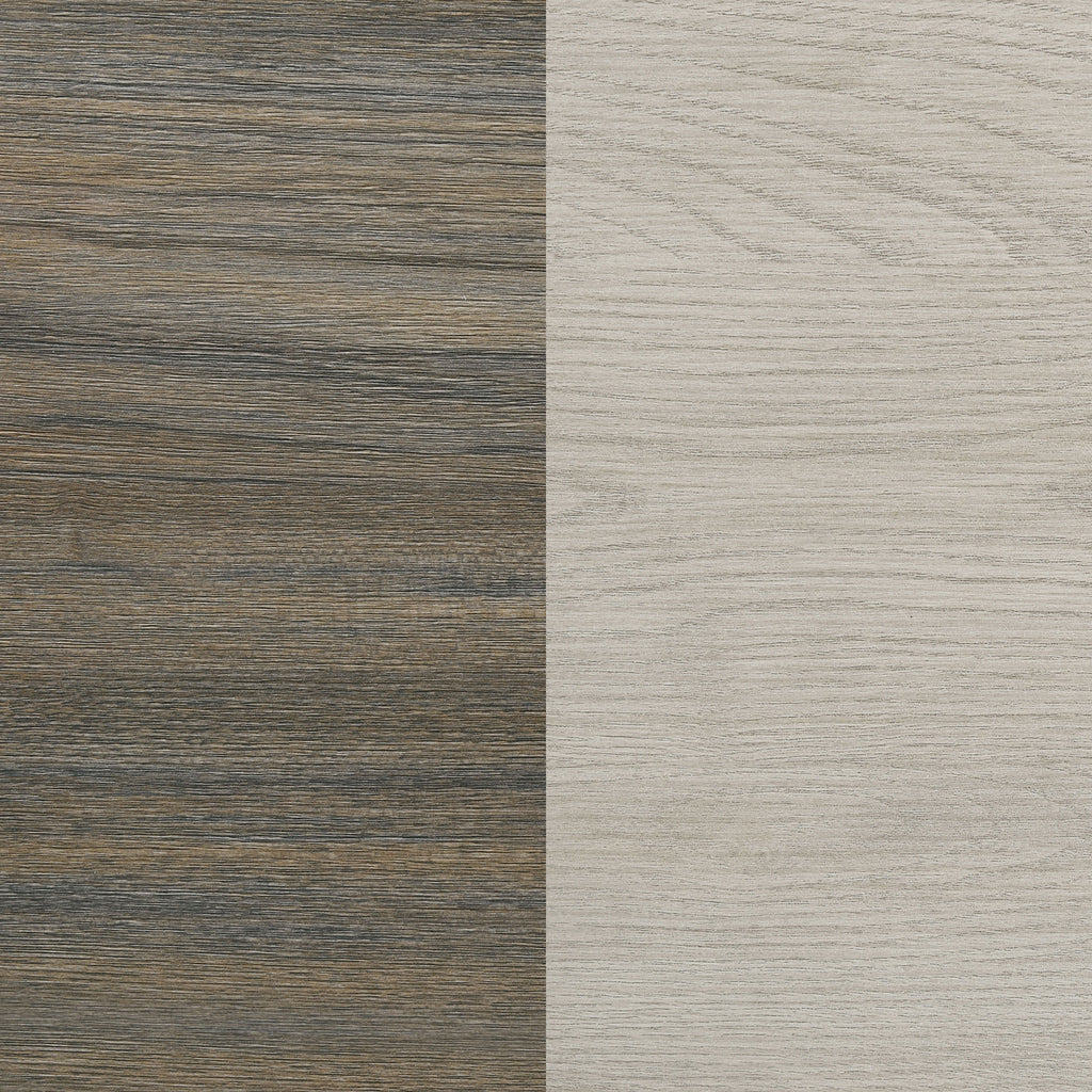 Transform your bedroom with this contemporary set, available in multiple configurations. Each set includes a bed with a bookcase headboard featuring a hidden storage compartment, offering both charm and practicality. The sleek two-tone melamine design blends natural wood tones, complementing any decor. The nightstand and dresser provide ample storage with smooth metal extension glides and antique nickel handles, ensuring easy access and a touch of vintage charm. The dresser's matching mirror, framed in the same melamine finish, enhances the room's aesthetic by reflecting light and adding depth. The optional chest provides additional storage, making this set versatile. Crafted from durable melamine and engineered wood, this bedroom set offers lasting quality and contemporary elegance for a stylish space. Key Features: • Queen bed with a bookcase headboard and hidden compartment for smart storage • Contemporary two-tone melamine finish for a modern look • Nightstand and dresser with ample storage and smooth metal extension glides • Antique nickel handles add vintage charm and sophistication • Mirror enhances room aesthetic, reflecting light and adding depth