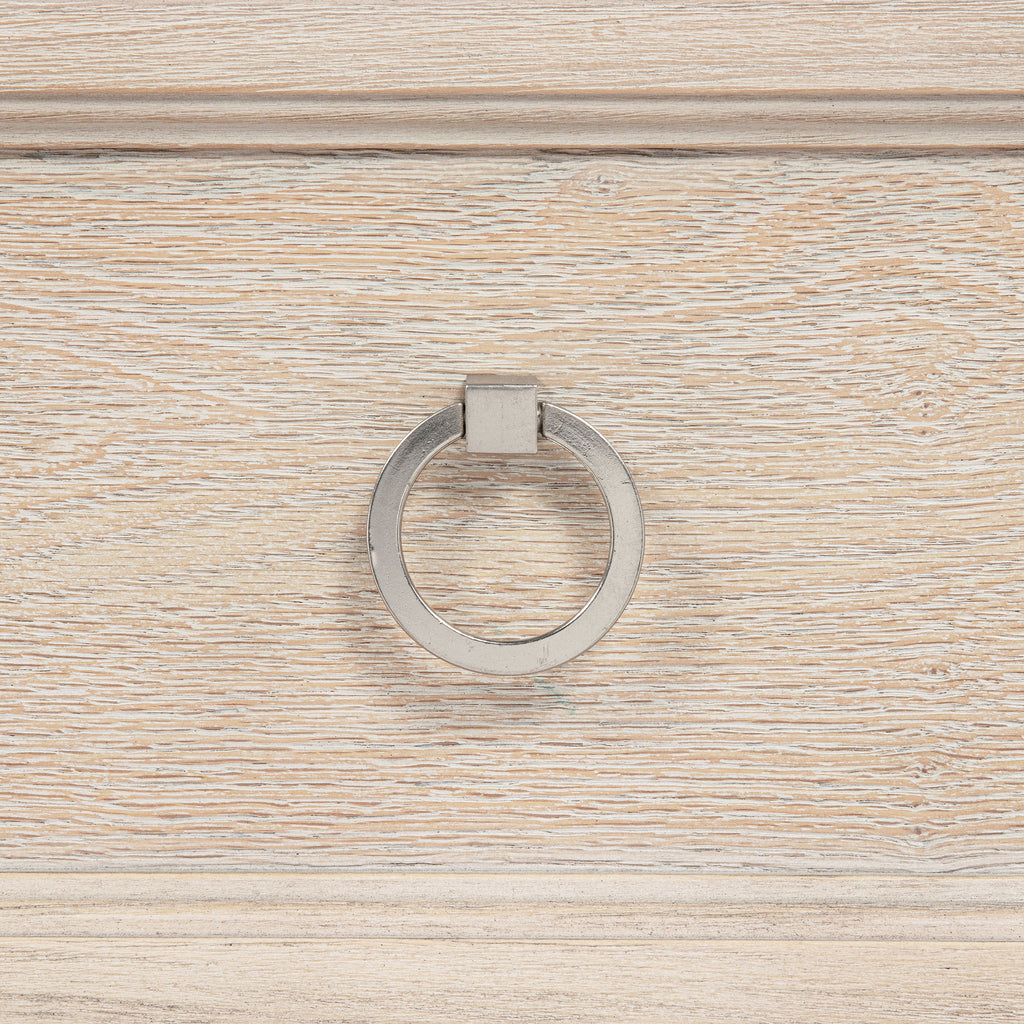 Softly structured and beautifully balanced, this six-drawer dresser brings timeless charm to the bedroom. Framed with clean lines and stepped trim, it offers generous storage behind a refined facade. The washed oak finish reveals natural wood grain, while polished nickel ring pulls add a hint of shimmer. Crafted from poplar, oak veneer, and engineered wood, it brings enduring grace and practical elegance to daily living. Key Features: • Six-drawer dresser with clean lines and stepped trim for classic bedroom appeal • Washed oak finish highlights soft wood grain with breezy natural texture • Polished nickel ring pulls add gentle shine and traditional detail • Spacious drawers offer versatile storage for clothing or linens • Crafted from poplar, engineered wood, and oak veneer for lasting strength • Tip-over restraint included for added safety and everyday stability