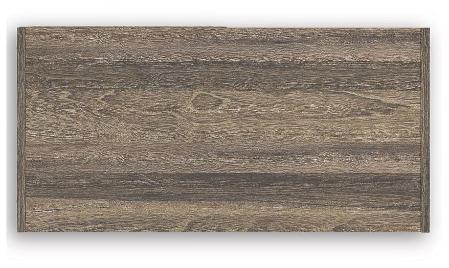 • Weathered brown finish over replicated oak grain with authentic touch